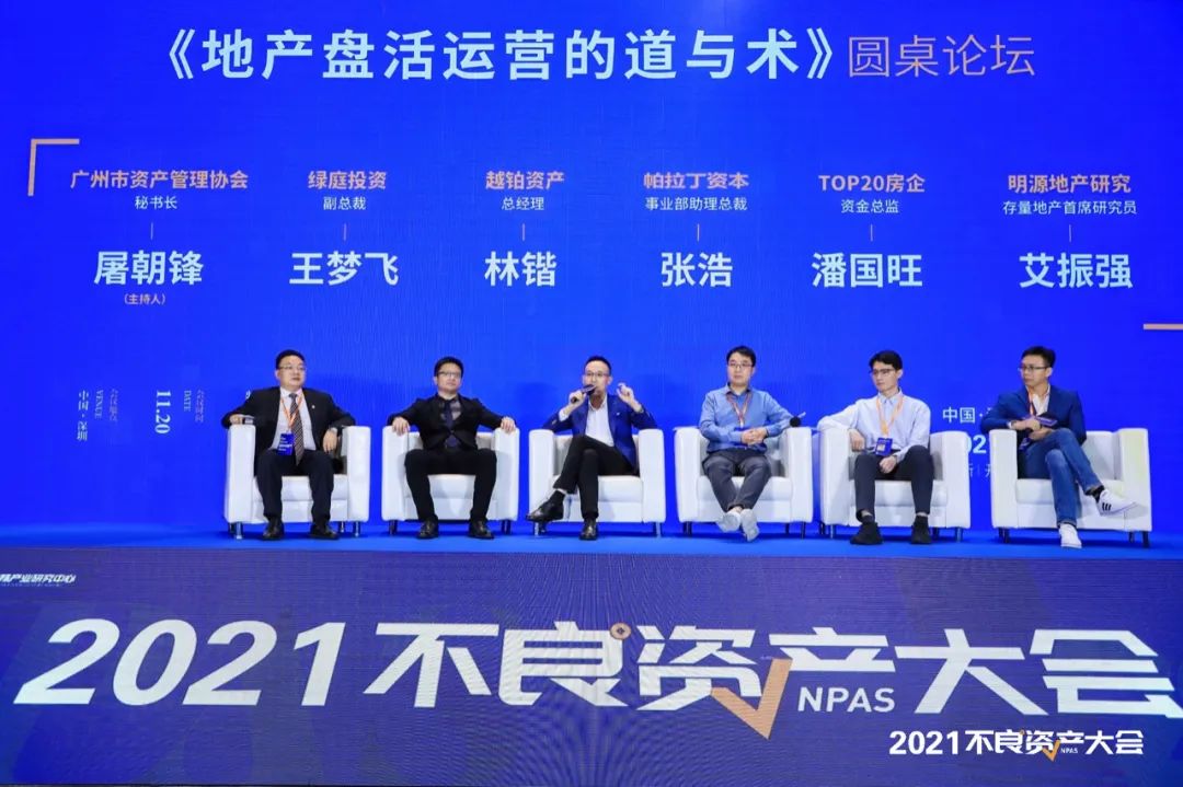 大會(huì)第二場圓桌《地產(chǎn)盤活運(yùn)營的道與術(shù)》由廣州市資產(chǎn)管理協(xié)會(huì)秘書長屠朝鋒主持,與綠庭投資副總裁王夢飛、越鉑資產(chǎn)總經(jīng)理林鍇、帕拉丁資本事業(yè)部助理總裁張浩、TOP20房企資金總監(jiān)潘國旺、明源地產(chǎn)研究 存量地產(chǎn)首席研究員艾振強(qiáng)一起對話。