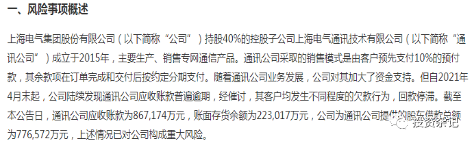 沒想到濃眉大眼的上海電氣也爆雷了!極端情況下得虧83億,上海電氣一年凈利也就50億左右。這里是截了公告里面兩段比較重要的,完整的可以去看看上市公司公告。整個公告有幾個點比較有意思: