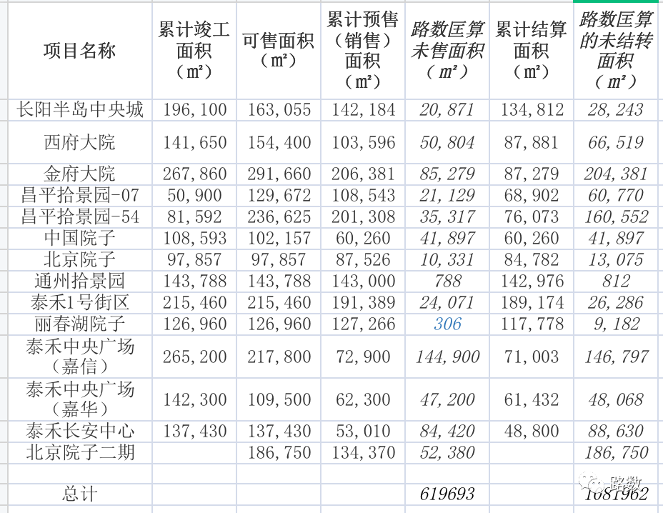 路數匡算,未售面積約60萬平方米,未結轉面積約100萬平方米。按照每平方米僅7萬簡單算,超400億貨值成立 ▼