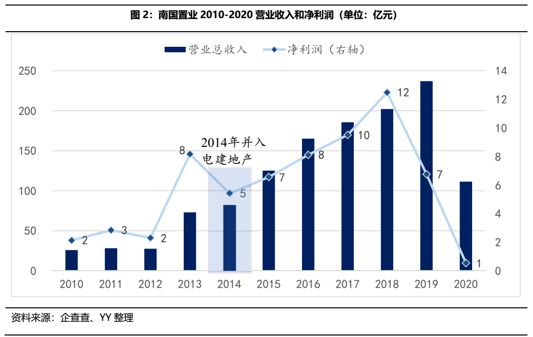 電建地產(chǎn)自2014年正式收購南國置業(yè),被收購的南國置業(yè)是否實(shí)現(xiàn)戰(zhàn)略升級(jí)以及經(jīng)營(yíng)改善?我們以2014年起至今為窗口期來進(jìn)行觀察。