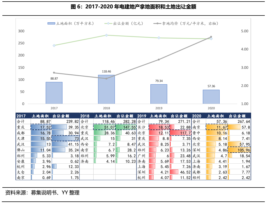 為此,電建地產(chǎn)股東也簽下了對(duì)賭協(xié)議。中國電建及中電建建筑承諾,電建地產(chǎn)在整個(gè)業(yè)績(jī)承諾期間(2020年-2023年)內(nèi)累積合計(jì)實(shí)現(xiàn)的扣除非經(jīng)常性損益后的稅后凈利潤(rùn)不低于28.26億元,即公司平均每年需要實(shí)現(xiàn)7.065億元的扣非凈利潤(rùn),而如表1,公司2019年扣非凈利潤(rùn)僅3.02億元,且2017、2018年拿地成本普遍較高,導(dǎo)致此后幾年盈利空間可能被壓縮,疊加當(dāng)前房地產(chǎn)行業(yè)整體以穩(wěn)為主的政策基調(diào),要完成協(xié)議目標(biāo)壓力不小。如果電建地產(chǎn)未能如約完成,則中國電建、中電建建筑履行業(yè)績(jī)補(bǔ)償義務(wù),2020年的業(yè)績(jī)顯著是需要補(bǔ)償。
