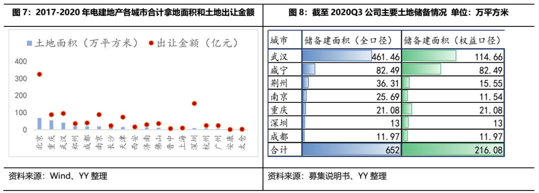 存量土儲(chǔ)方面,截至2020Q3,公司主要城市的全口徑建筑面積合計(jì)652萬平方米,權(quán)益口徑儲(chǔ)備建筑面積合計(jì)216.08萬平方米,公司合同銷售面積(并表項(xiàng)目全部+參股權(quán)益比例)為172萬平方米,存量土儲(chǔ)較為充裕,主要位于二線城市,武漢、咸寧和重慶的權(quán)益儲(chǔ)備建面積位居前三,分別達(dá)到114.66億元、82.49億元和21.08億元,而武漢、荊州、南京的全口徑和權(quán)益口徑建面差異較大,這幾個(gè)城市是南國置業(yè)之前重倉區(qū)域,說明其聯(lián)合開發(fā)項(xiàng)目較多。