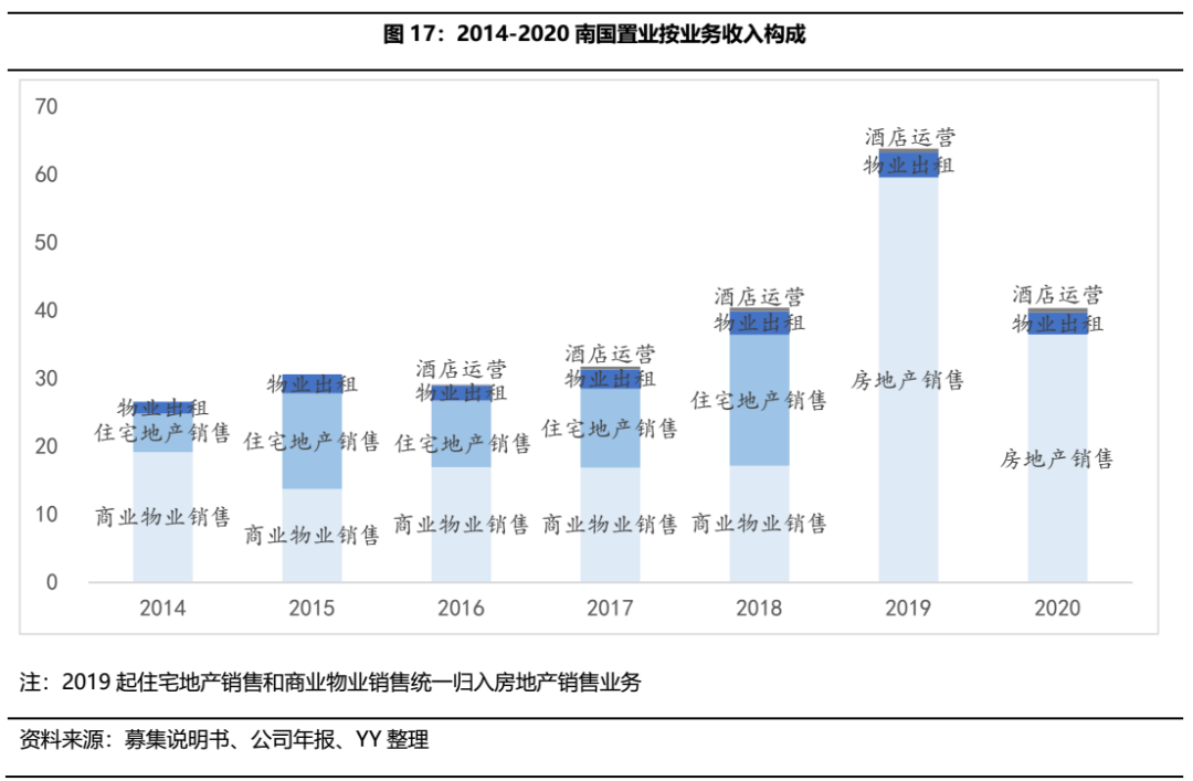 公司聚焦房地產(chǎn)主業(yè),以剛需和改善類住宅為主,商業(yè)地產(chǎn)為輔,2014年6 月公司收購南國置業(yè)前,公司以住宅地產(chǎn)項(xiàng)目為主,股權(quán)收購后,公司進(jìn)一步拓展商業(yè)地產(chǎn)業(yè)務(wù),產(chǎn)品覆蓋住宅、寫字樓、酒店等多種業(yè)態(tài),形成住宅+地產(chǎn)的業(yè)態(tài)結(jié)構(gòu)。