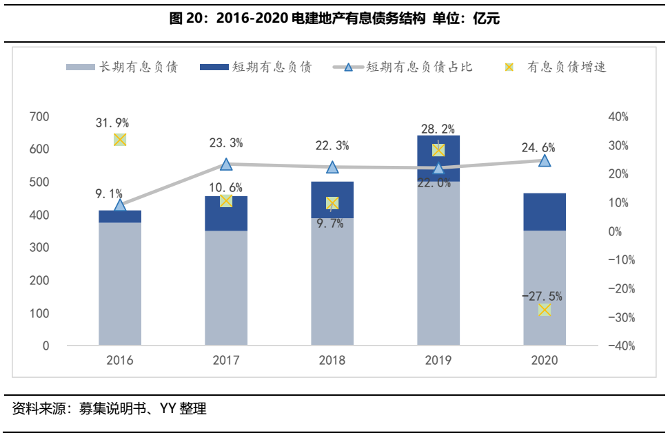 2016-2019年公司有息負(fù)債規(guī)模仍是正增長(zhǎng),反應(yīng)了債務(wù)驅(qū)動(dòng)的經(jīng)營(yíng)模式;2020有息負(fù)債首次負(fù)增長(zhǎng)。結(jié)構(gòu)方面,公司融資結(jié)構(gòu)以長(zhǎng)期債務(wù)為主,截至2020年末,公司短期有息負(fù)債規(guī)模為114.50億元,占有息負(fù)債比重的24.6%,償付節(jié)奏較為均衡。