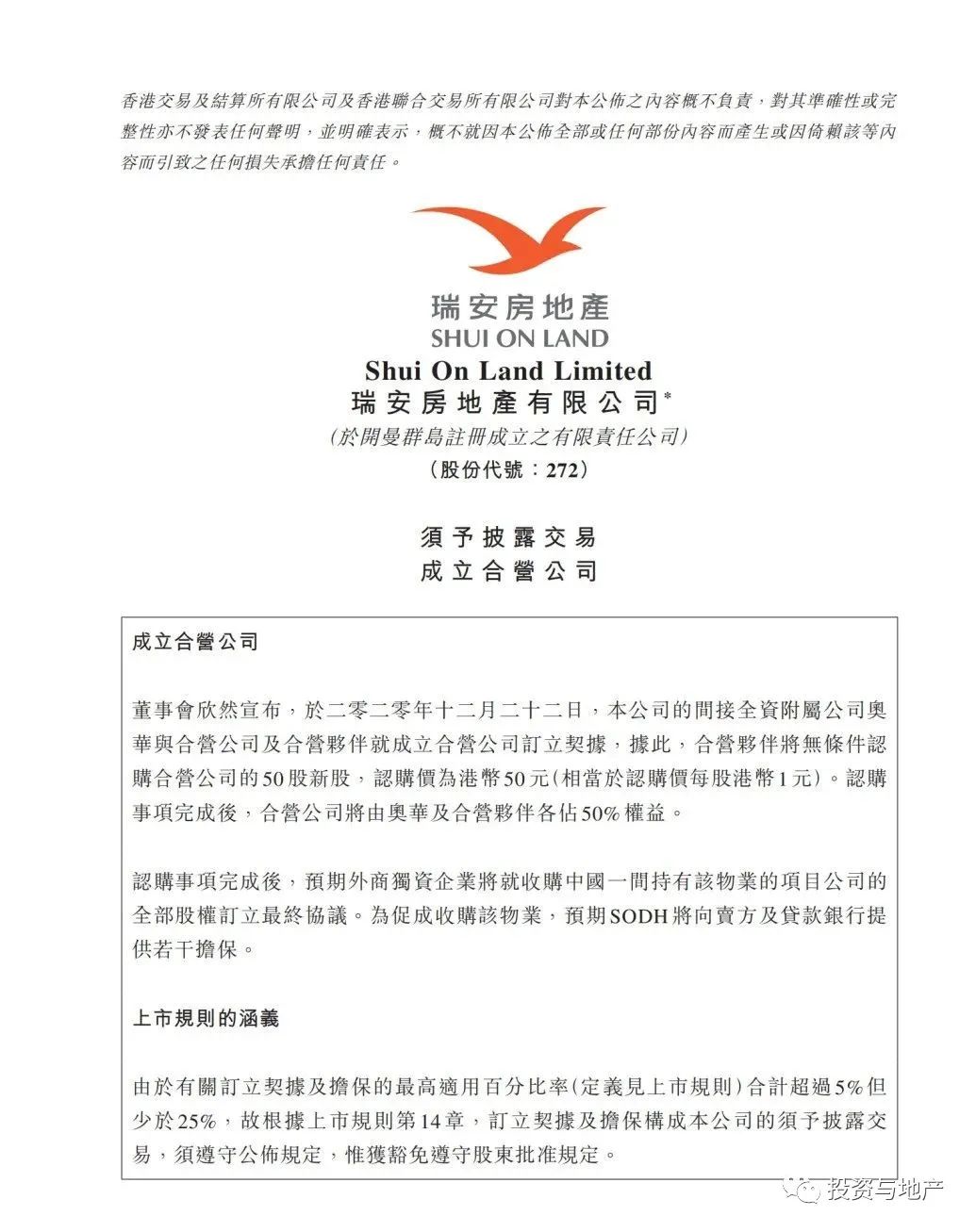 而此前,于2020年12月22日,瑞安房地產有限公司(00272.HK)發布公告稱,公司的間接全資附屬公司奧華與合營公司及合營伙伴高富諾集團旗下公司就成立合營公司(國盈發展有限公司)訂立契據。
