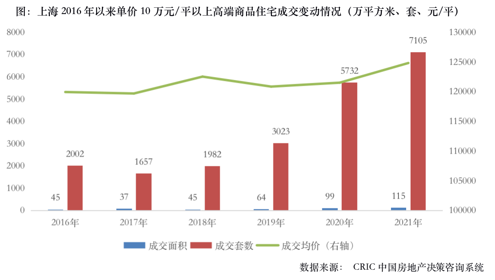2021年豪宅市場一片繁榮,其中上海的表現可謂“可圈可點”,全年單價10萬元/平以上的高端盤成交套數達到了7105套,較2020年同比上漲24%,翠湖五集、九廬等多個樓盤屢開屢罄,“一房難求”。2022年初我們對上海部分高端樓盤展開調研,以點帶面,意圖揭開其熱銷背后的秘密。