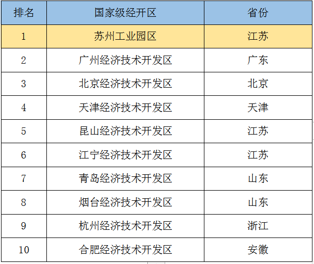 表1:國(guó)家級(jí)經(jīng)開(kāi)區(qū)綜合考評(píng)TOP10