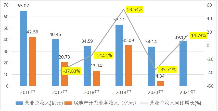 2021年,中新集團(tuán)年報(bào)不再顯示房地產(chǎn)開(kāi)發(fā)業(yè)務(wù)的情況,且實(shí)現(xiàn)營(yíng)業(yè)總收入39.2億元,同比增長(zhǎng)14.7%,穩(wěn)中有進(jìn),發(fā)展態(tài)勢(shì)良好。