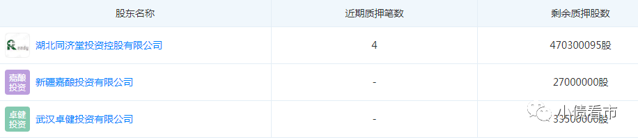 一方面,張美華夫婦通過高比例質押股權融資。截至2020年3月末同濟堂控股直接持有同濟堂33.14%的股份、通過一致行動人武漢卓健和新疆嘉釀合計持有43.38%的股份,三方股東所持公司股份質押比例分別為100%、24.46%和100%。