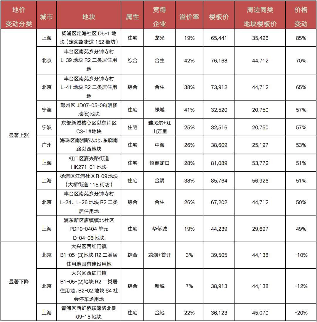 TOP50高價(jià)地中,僅有3幅地樓板價(jià)較周邊同類地塊價(jià)格下降,降幅均在20%以內(nèi)。