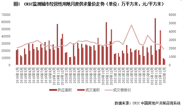 01 市場走勢供求規(guī)模雙雙環(huán)比大降 平均地價創(chuàng)2019年以來新低