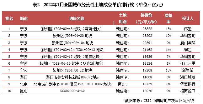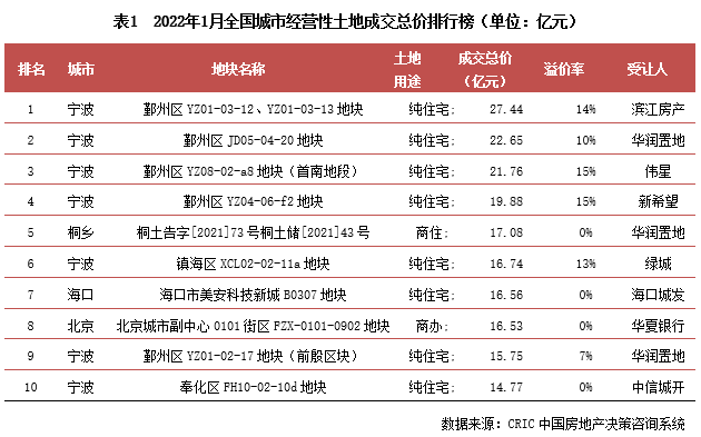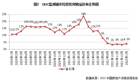 02 市場熱度 寧波三輪土拍回暖拉動1月溢價率微漲 但多數(shù)城市土地市場仍舊遇冷