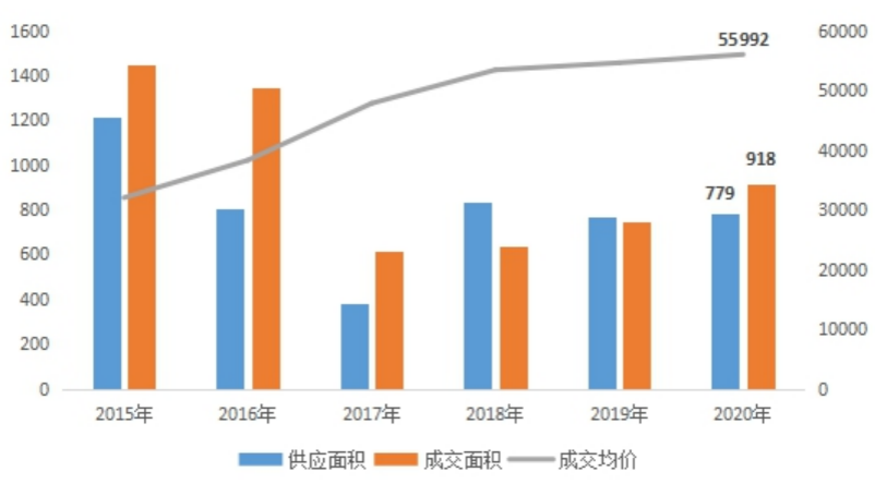 圖:2015-2020年上海商品住宅供求情況(萬平方米、元/平方米)