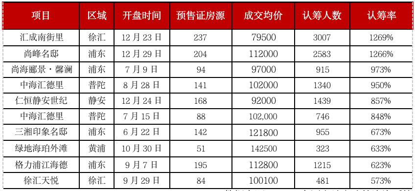 表:2020年上海典型低中簽率項目(套、元/平方米、人)