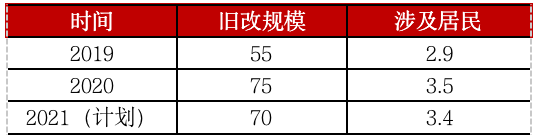 表:2019-2021上海舊區改造規模(萬平方米、萬戶)