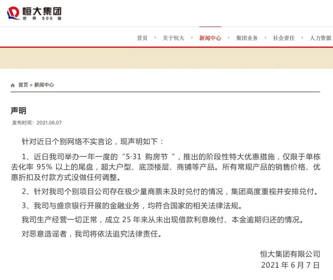 然而,在恒大“大象起舞”的過程中,也出現(xiàn)了一些質(zhì)疑。6月7日,恒大發(fā)布聲明,稱公司生產(chǎn)經(jīng)營一切正常,對惡意造謠者,將依法追究法律責任。
