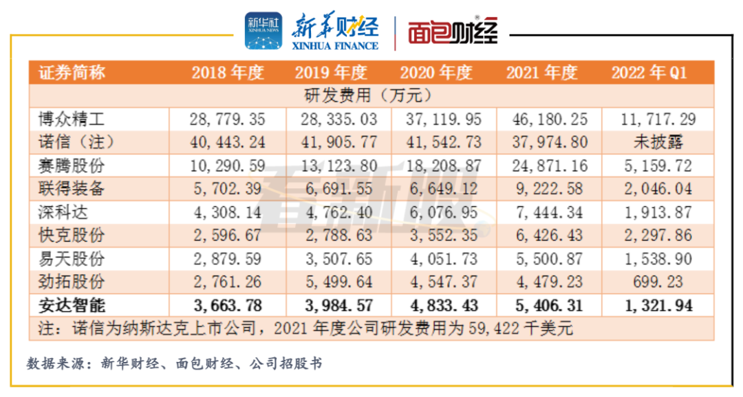 身為科創(chuàng)板新上市的智能制造裝備業(yè)公司,安達(dá)智能當(dāng)前的研發(fā)投入和研發(fā)能力或難具優(yōu)勢。