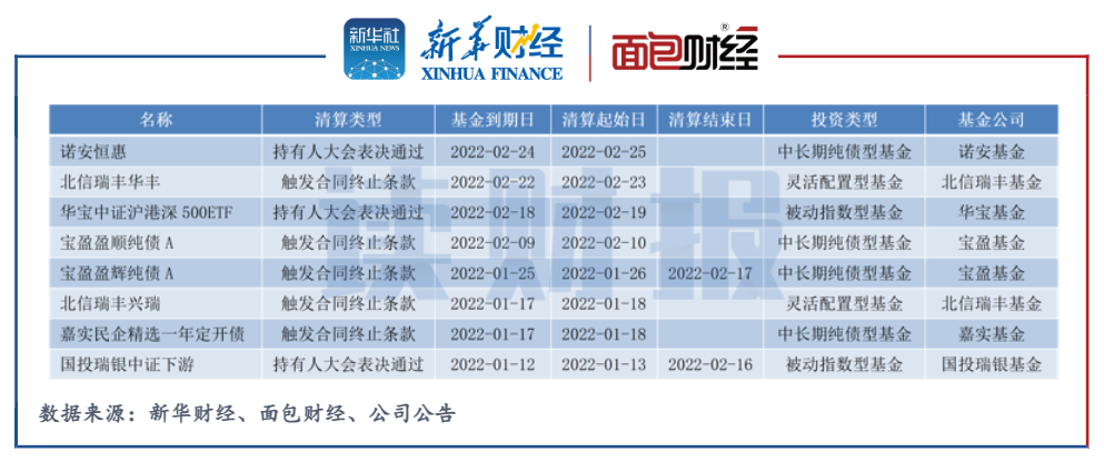 諾安恒惠披露公告稱,該基金由持有人大會表決通過,自2022年2月25日起進入基金財產清算程序。