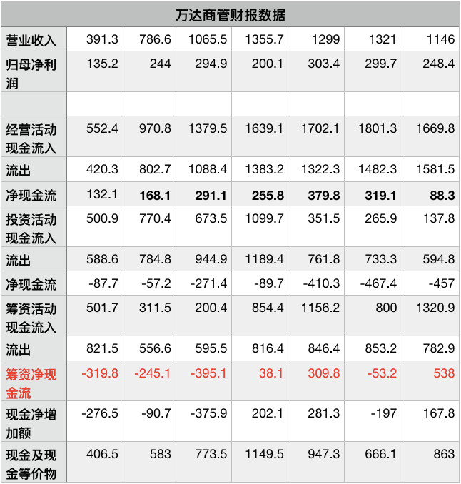 從現金流量表中,可以清晰看出,萬達商管的失血點和輸血點。