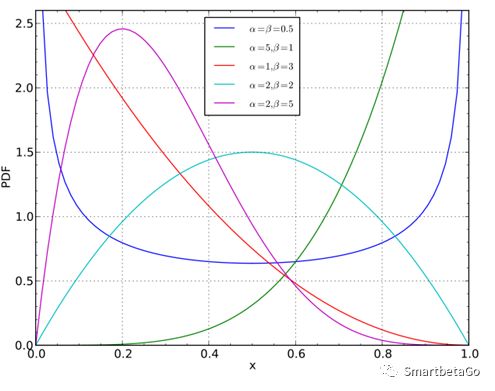 Beta分布的形狀隨著兩個(gè)參數(shù)的變化而呈現(xiàn)很大的差異,也能很好地?cái)M合偏峰厚尾的情況。
