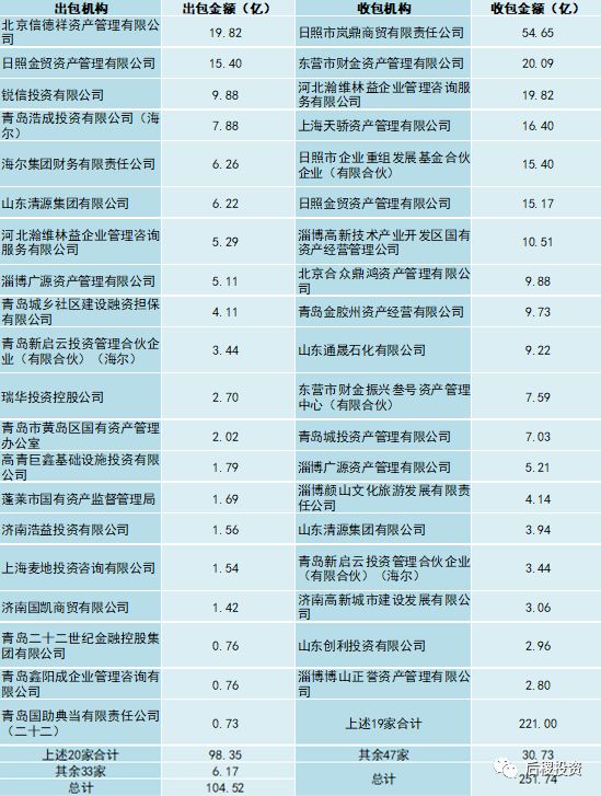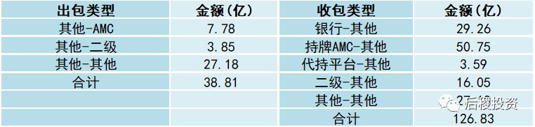 另上述所列二級投資機構中,出包機構中有六家具有國資背景,收包機構中多達12家有國資背景,同時有三家“海爾系”企業。雖未在上述圖表中列明,但二級投資機構中,還看到了律師事務所作為主體多次參與了出包和收包,也表明了市場參與主體的逐漸多元化。