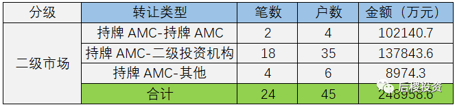 2019年二級投資機構共出讓260戶,出讓債權金額31億余元,其中持牌AMC-二級為主要轉讓類型。