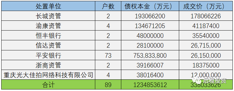 另外需要補充說明的是:本次統計重慶市2019年度成交公告共計1337戶,其中債權本金未透露的有48戶。