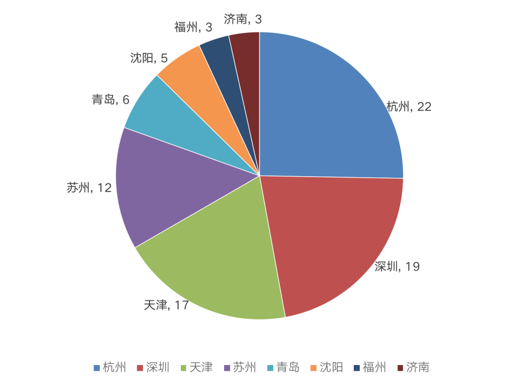 CRIC對上述完成出讓的8個城市共326宗土地情況進行系統(tǒng)梳理,高單價(起拍單價超過1萬元/平米)的土地幅數(shù)共有87宗,占比高達27%,主要分布在杭州、深圳、天津和蘇州四個城市,分別有22、19、17和12宗,優(yōu)質(zhì)地塊比較集中。