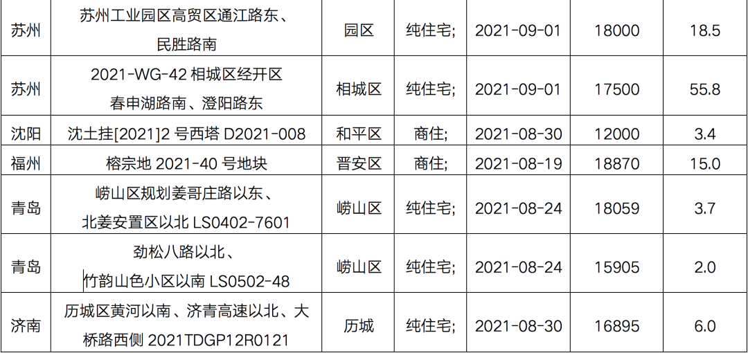 此外,天津南開區(qū)、蘇州工業(yè)園區(qū)、濟南歷城區(qū)、福州晉安區(qū)等均掛出多宗優(yōu)質(zhì)地塊,房企也可重點關注。