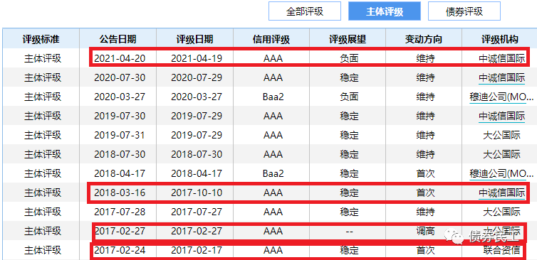 根據(jù)wind披露的公告信息,2021年4月19日,中誠(chéng)信國(guó)際將廣州農(nóng)村商業(yè)銀行股份有限公司的評(píng)級(jí)展望調(diào)整為負(fù)面,維持主體信用評(píng)級(jí)AAA。