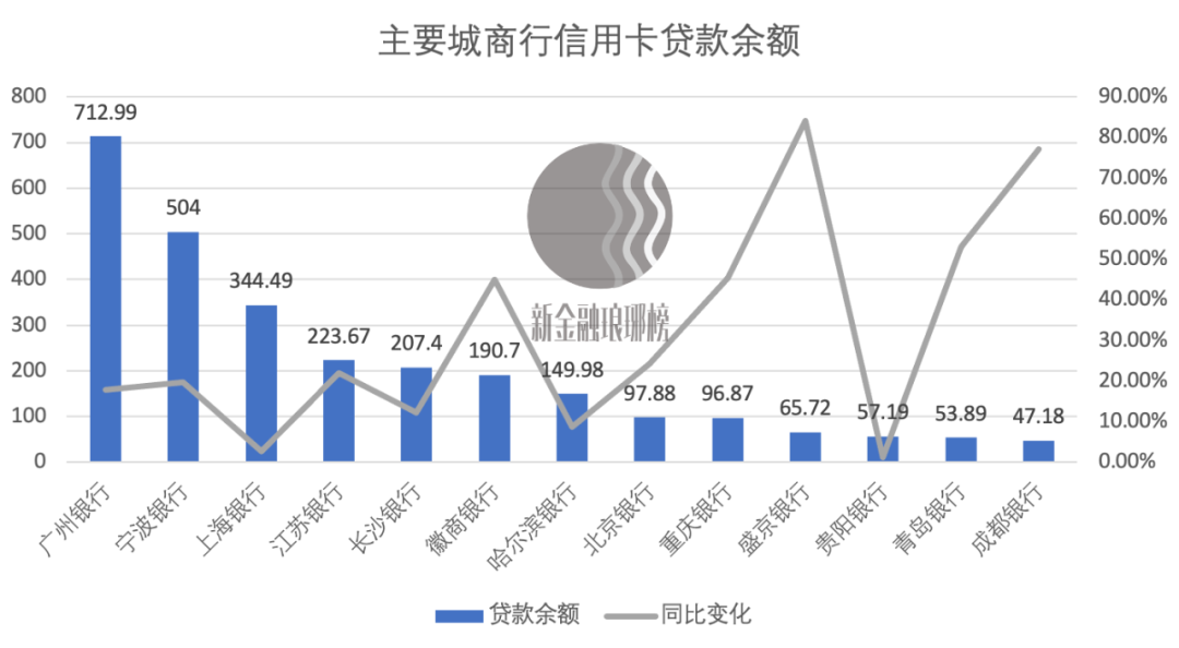從信用卡貸款余額來看,僅有不到10家城商行超過了100億元。截至去年末,廣州銀行以712.99億元位列榜首,寧波銀行也達(dá)到了504億元,發(fā)卡量最高的上海銀行排在第三位,貸款余額為344.49億元。