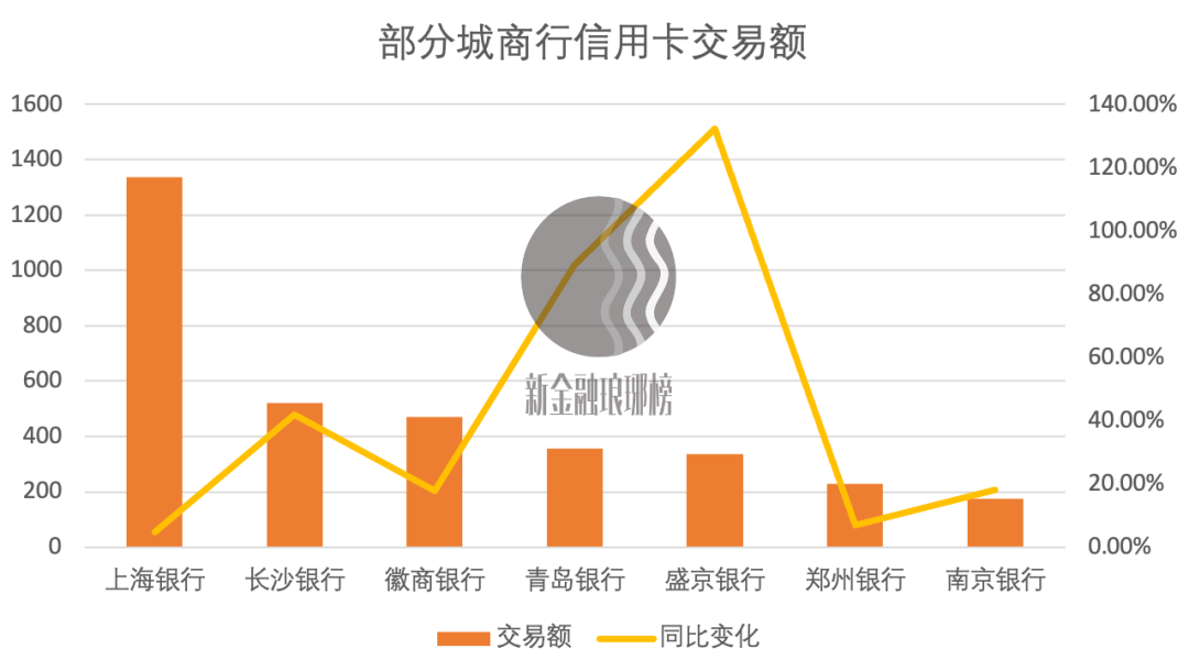 在新金融瑯琊榜統(tǒng)計(jì)的25家城商行中,披露了信用卡交易額的僅有7家。上海銀行遙遙領(lǐng)先,也是唯一一家全年信用卡交易額超過千億元的城商行。