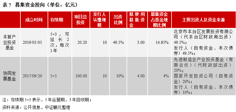 豐首產(chǎn)業(yè)投資基金和協(xié)同發(fā)展基金分別于2019年3月和2017年9月設(shè)立,均為有限合伙企業(yè),發(fā)行人為有限合伙人。其中,協(xié)同發(fā)展基金投資方式包括:(1)股權(quán)投資;(2)以股權(quán)投資為目的的債轉(zhuǎn)股投資和過橋貸款;(3)股權(quán)加以股權(quán)投資為目的的債轉(zhuǎn)股的混合投資;(4)出資新設(shè)子基金或投資于其他基金;(5)經(jīng)理事會批準(zhǔn)的其他投資方式。