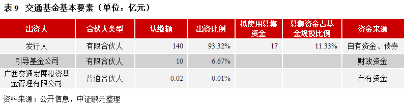 交通基金,2019年由發(fā)行人作為主發(fā)起人設(shè)立的有限合伙制基金,總體規(guī)模150億元,由廣西自治區(qū)財政廳安排 10 億元,注資廣西投資引導(dǎo)基金有限責(zé)任公司,代表自治區(qū)財政廳履行出資人義務(wù)。剩余資金由廣西交投集團通過增信籌資、社會化募集等方式籌集。發(fā)行人子公司廣西交通發(fā)展投資基金管理有限公司為基金管理人。交通基金存續(xù)期30年,根據(jù)經(jīng)營需要,可延長?;鹜断蚴?nèi)高速公路、鐵路等項目,投資方式主要以母子基金形式進行,以股權(quán)形式投資到項目企業(yè)的資金作為項目資本金,或帶動金融機構(gòu)通過貸款等債權(quán)方式出資到項目企業(yè)。2020年公司收到廣西投資引導(dǎo)基金有限公司投資資金 8.83 億元,用于出資交通基金相關(guān)子基金。