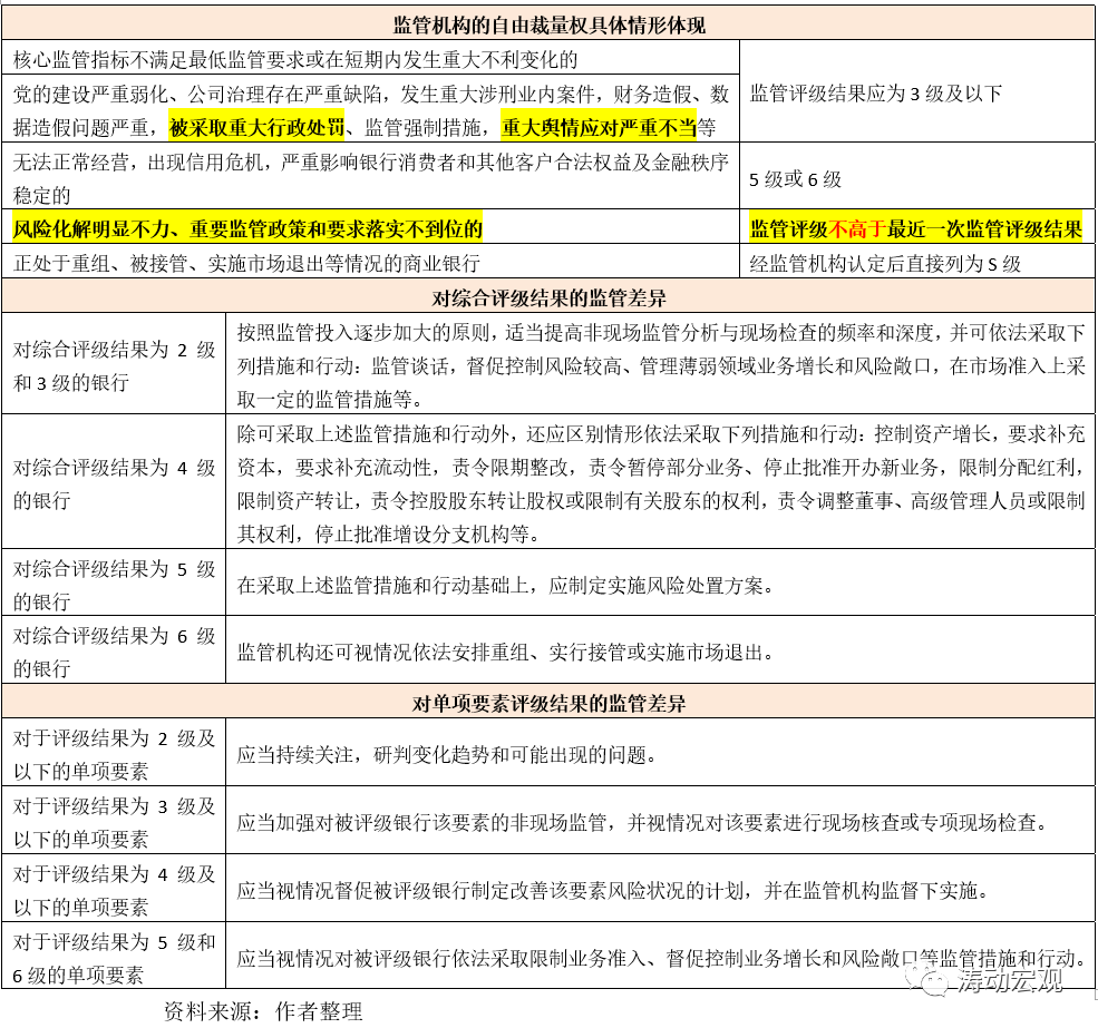 監(jiān)管機構(gòu)可根據(jù)評級結(jié)果的差異,采取不同的監(jiān)管舉措,一般根據(jù)評級檔次的高低,按照監(jiān)管投入逐步加大的原則,適當(dāng)提高監(jiān)管力度。目前來看,只有評級結(jié)果為1級的銀行,才可以豁免相應(yīng)監(jiān)管。