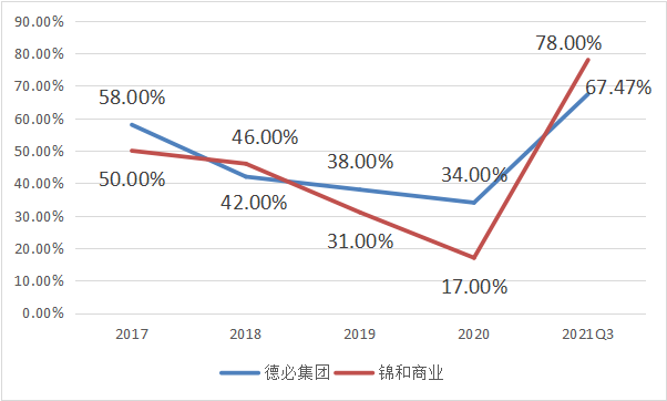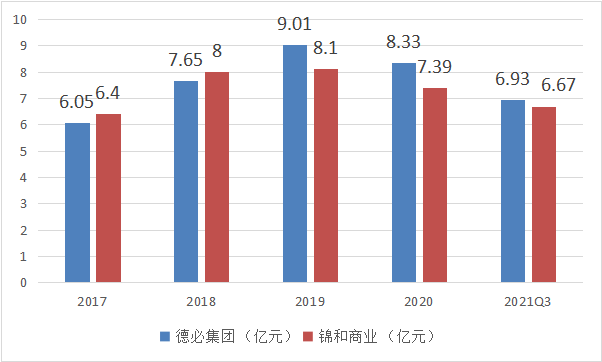 營業(yè)收入:德必集團營收反超錦和商業(yè)