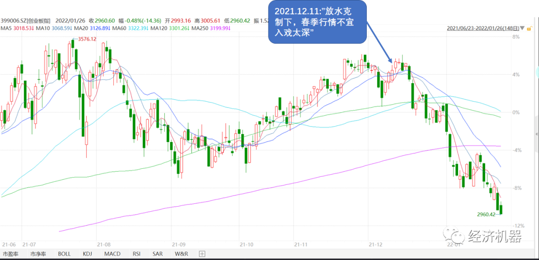 這波調(diào)整之處,我們即在2021年12月11日公眾號文章中明確給出了提示,“放水克制下,春季行情不要入戲太深”,這一波的調(diào)整我們的預(yù)判再次走在了曲線之前。年初以來,這波下跌是多種因素疊加的結(jié)果,市場對大放水及春季行情的落空肯定是最底層的邏輯。在此之上才是“風(fēng)格切換”和“行業(yè)周期拐點(diǎn)”下的新能源板塊調(diào)整,以及海外美聯(lián)儲加速緊縮等預(yù)期。
