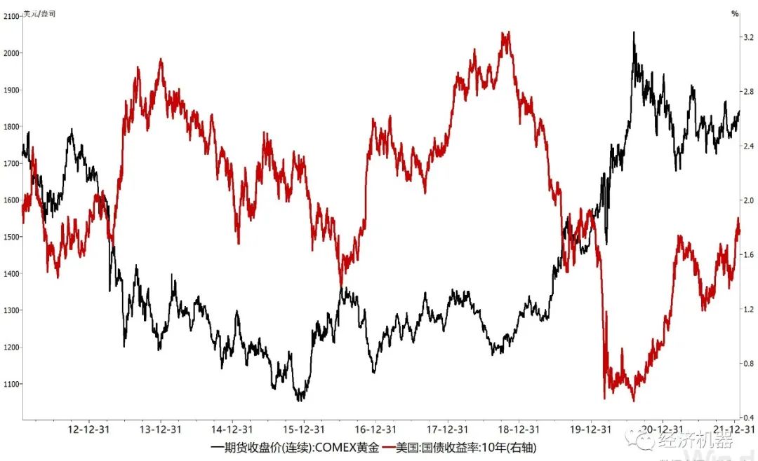 2022年,黃金走向取決于加息與通脹誰跑的更快。1月以來,各期限美國國債名義收益率都有加速上漲的勢頭。美國10年期綜合抗通脹國債收益率也有抬頭跡象,表明實(shí)際利率有走高態(tài)勢。未來黃金價格取決于加息節(jié)奏,若實(shí)際利率上升滯后于通脹的速度、加息低于預(yù)期,黃金抗通脹屬性會推動金價保持強(qiáng)勢;若加息強(qiáng)度與節(jié)奏超市場預(yù)期,導(dǎo)致實(shí)際利率大幅上升,則黃金價格有快速回落可能。加息過快,超過了實(shí)體經(jīng)濟(jì)承受能力,出現(xiàn)長短期利率期限倒掛等極端情況時,黃金或?qū)⒃俅斡瓉頇C(jī)會。