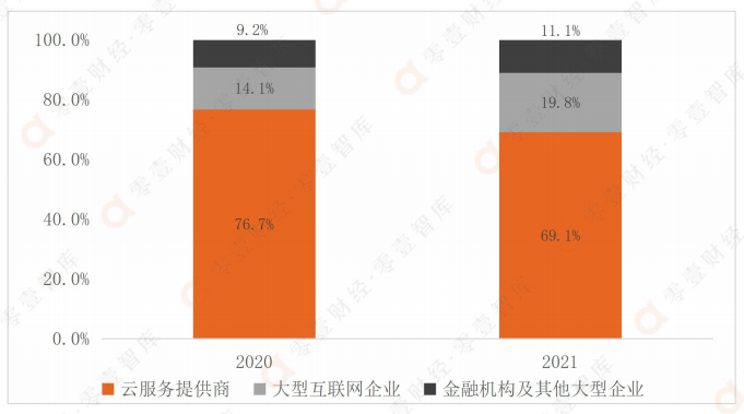 萬國數據則以批發模式為主,通過自建大型數據中心向產業鏈下游客戶提供托管和管理服務,主要合作客戶為云服務提供商、大型互聯網企業、金融機構等。2021年,萬國數據的云服務提供商、大型互聯網企業、金融機構及其他大型企業的數據中心簽約面積分別占比69.1%、19.8%和11.1%,相較于2020年,大型互聯網企業、金融機構及其他大型企業的占比略有上升。