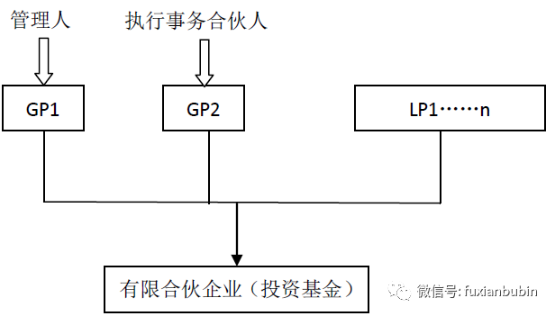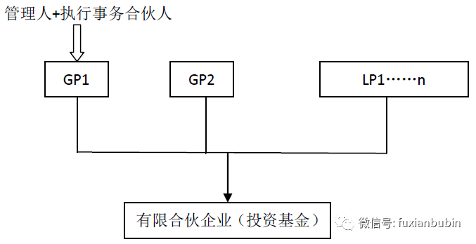 二是一名GP擔任基金管理人,另一名GP擔任執(zhí)行事務(wù)合伙人但不具有基金管理人資格。其結(jié)構(gòu)如圖所示: