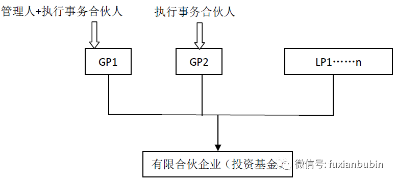 一是一名GP同時擔任基金管理人和執(zhí)行事務(wù)合伙人,另一名GP不具有基金管理人資格。其結(jié)構(gòu)如圖所示: