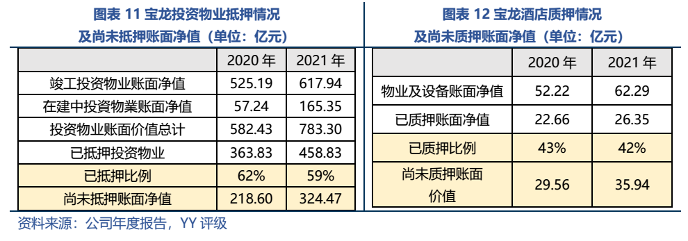 03 投資物業和酒店賬面上還有約***億元的抵押空間。但當前環境下,金融機構在選擇資產和發放貸款時可能會更加謹慎。而從資產質量角度來看,寶龍的商場和酒店布局偏下沉,多布局一二線城市非核區域,以及下沉至三線及區縣,而且近年來商場平均收益呈下滑趨勢,盈利能力有所削弱,加上疫情反復使得商場和酒店經營承壓,商場和酒店資產整體質量一般。