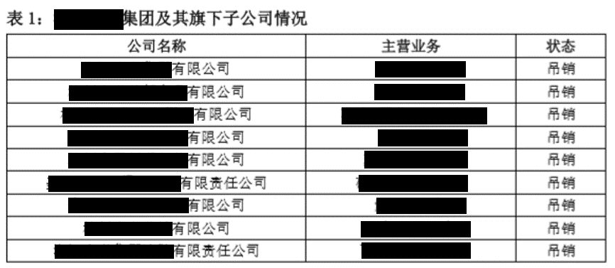 經調查,發現如表面所示,劉海似乎再無可執行資產。劉海一手創建的A集團及其對外投資的子公司已全部吊銷。