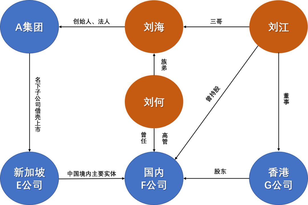 新加坡E公司在國內的經營實體是F公司,其前身是A集團旗下的子公司,劉海及其族弟劉何都曾任公司高管。
