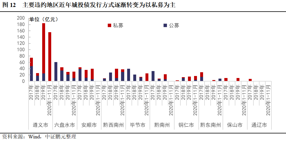 (3)發債城投平臺非標違約對自身及所處地區城投債發行影響較大,對上級區域城投債發行影響較小;違約后所處地區城投債發行轉為以私募發行為主,債券發行期限有所縮短,發行利率抬升。若無強有力措施提振市場信心,非標違約地區城投債發行將極大程度壓縮。