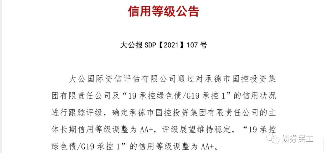 1、承德國控主體評級上調至AA+