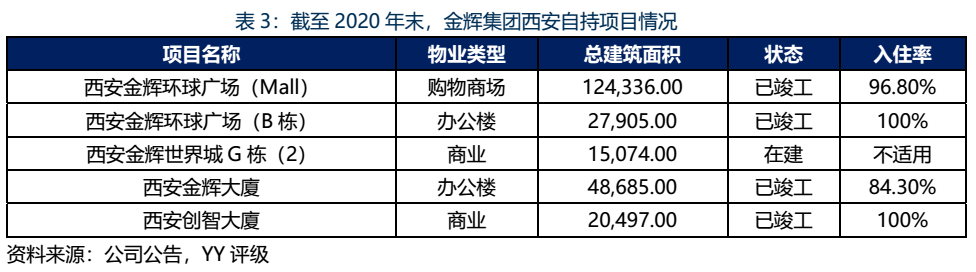 除了西安市場于17年之前存在價格洼地外,金輝集團之所以大規(guī)模布局于西安,或基于金輝嘗試利用獲取綜合用地降低土地成本,而于西安大規(guī)模布局。目前,金輝集團位于西安的12個存量項目存在較大體量的綜合商業(yè)自持,除了涇河小鎮(zhèn)或面臨去化壓力外,其余項目的區(qū)位較為核心。