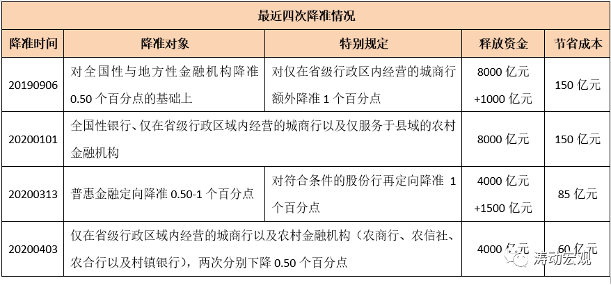1、最近四次降準釋放的資金量和為銀行節省的成本逐步降低,釋放資金量依次為9000億元、8000億元、5500億元和4000億元,節省的資金成本依次為150億元、150億元、85億元和60億元。