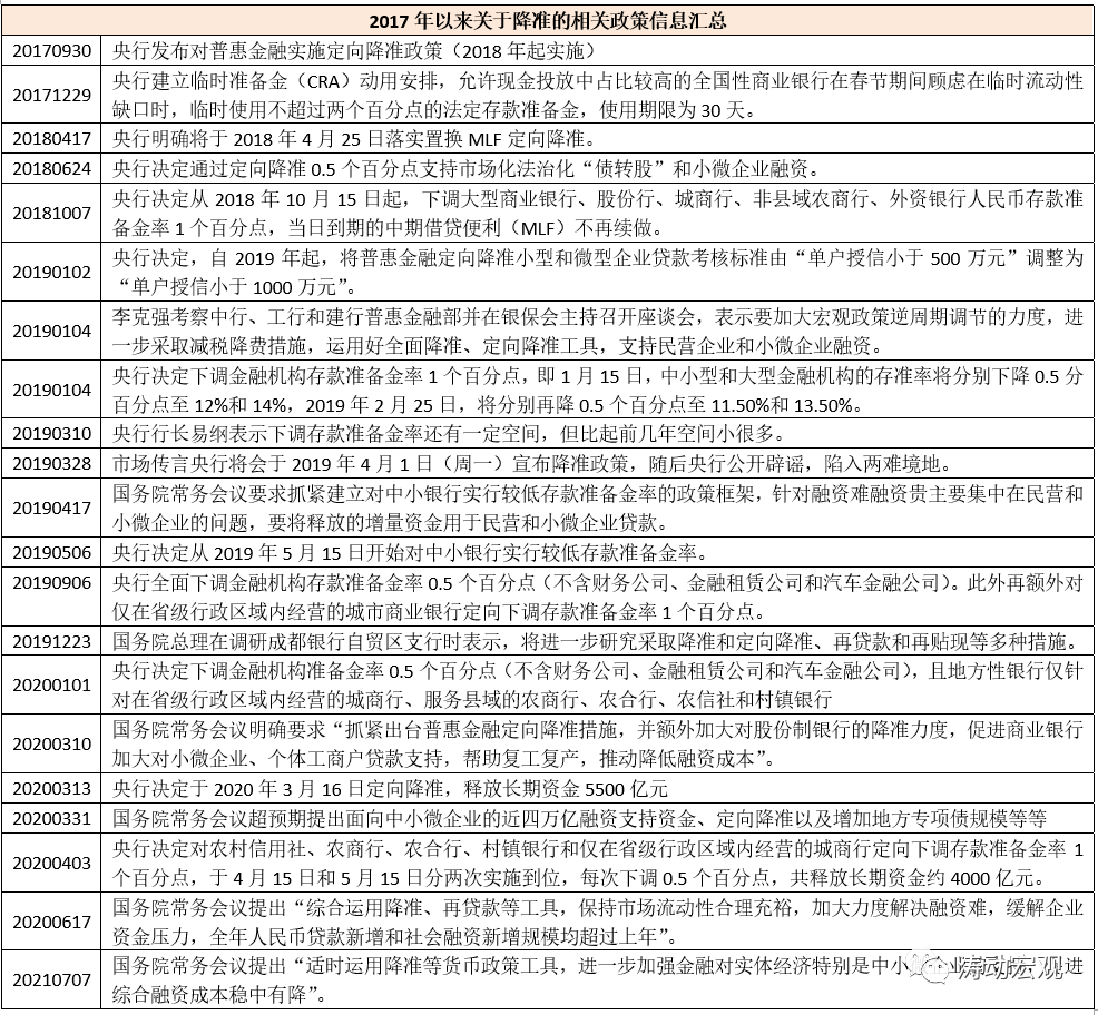 2021年7月7日,國務院常務會議召開,討論的問題有很多(如推出支持碳減排措施、進一步推動醫保服務、加強勞動者權益保護等),但被市場關注的實際上只有一句話,即“針對大宗商品價格上漲對企業生產經營的影響,要在堅持不搞大水漫灌的基礎上,保持貨幣政策穩定性、增強有效性,適時運用降準等貨幣政策工具,進一步加強金融對實體經濟特別是中小微企業的支持,促進綜合融資成本穩中有降”。這句話的表面意思是通過降準等貨幣政策工具來沖抵大宗商品價格上漲對企業生產經營的沖擊,即意味著降準可能馬上就要來了。