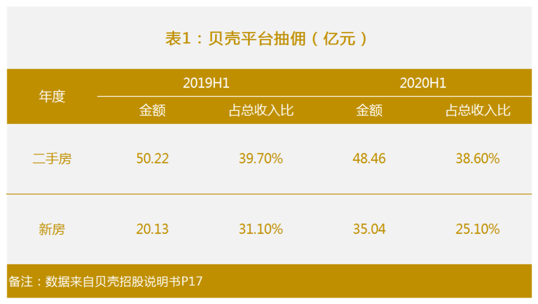 根據(jù)上面的模型,我們先看第一塊,貝殼平臺(tái)的抽成: